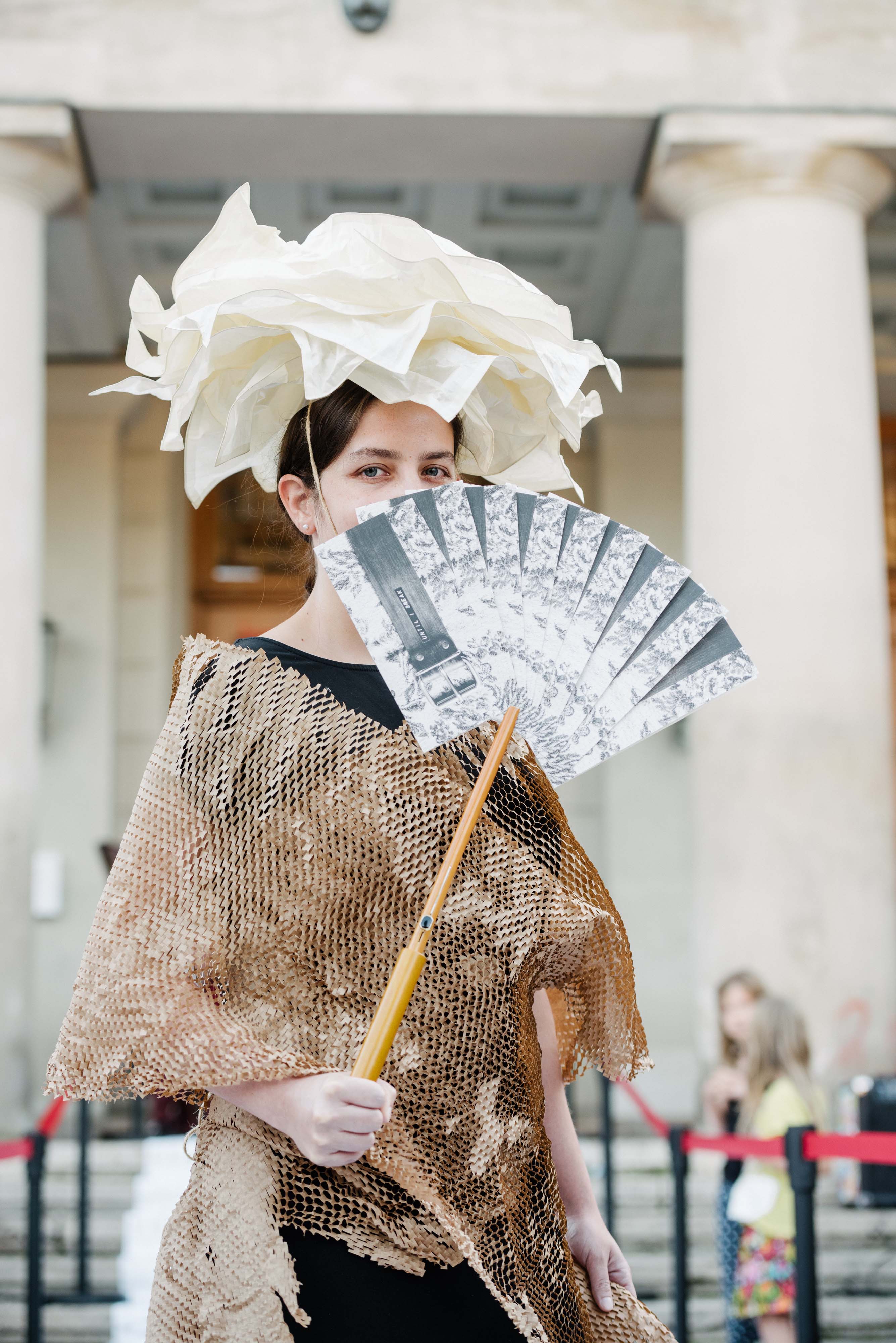 Along with the Carpet, costumes are designed and made with the help of participants during the working period. Each costume is designed with waste materials we ask people to donate during the working period. People are invited to help in the costume designing process and make their own ideas with these waste materials. During the last show they are invited to try on the costumes and walk on the final stage. Whoever donated their shopping receipts and waste materials is saved on our list as VIP guests for the final show!
